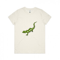 This organic cotton tee showcases the beautiful jewelled gecko, a rare gecko that is only found in Aotearoa.