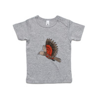 This organic cotton tee showcases the fabulous and cheeky kākā – an endangered parrot that is only found in Aotearoa.